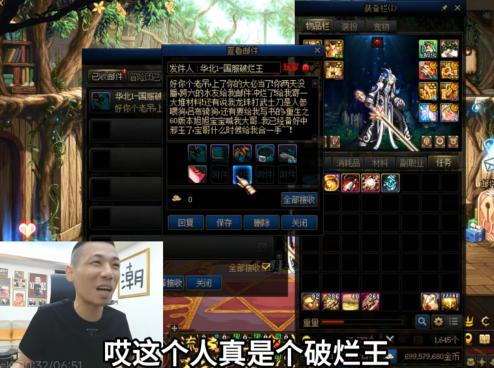 这次破烂王又给宝哥发送邮件了,邮件内容也是很有意思的,因为宝哥的展示自己也是被跨六的其他玩家给冲烂了。而这名破烂王也是准备好了中邪玉了,希望宝哥能帮忙合一下,毕竟宝哥也是国服第一合成王啊。而当宝哥再一看这破烂王邮寄的六件装备后懵了,这些装备也是真的极品啊。