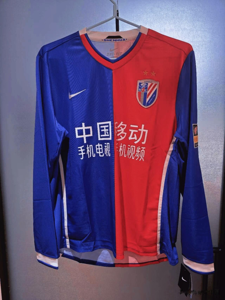 此后多年,申花球衣在模板化设计中坚守底色,虽历经不同赞助商,却始终守住深蓝主调,即便短暂尝试其他配色,最终都回归正统蓝衫,守住了球迷心中的信仰底色。