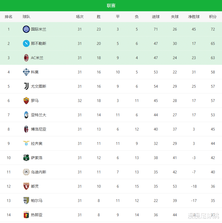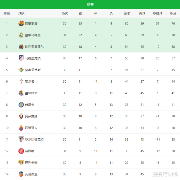 随着皇马1-1爆冷+罗马3-0! 西甲意甲最新积分榜: 巴萨国米夺冠在望