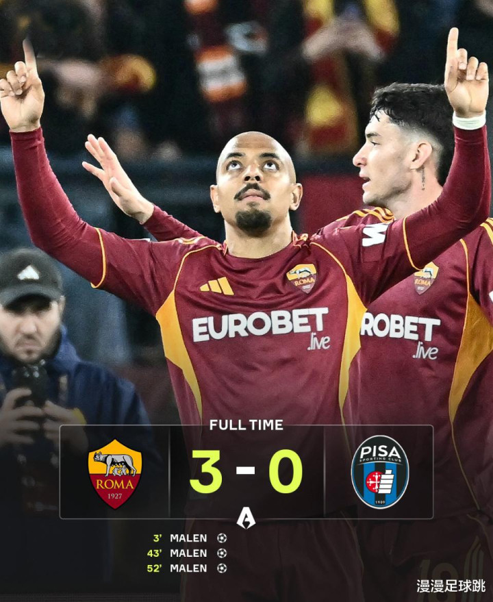 此役最大亮点属于冬窗新援马伦。这位锋线杀手单场上演帽子戏法,自1月登陆意甲以来,联赛已轰入10球,同期五大联赛仅次于凯恩的11球。短短几个月,马伦已经升至意甲射手榜第三,仅落后劳塔罗和杜维卡斯,成为罗马本赛季后半程最大惊喜。