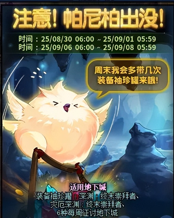 遇见“帕尼柏商店”的概率增加,并且会出现更多装备罐子!